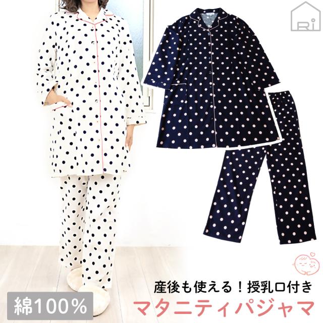 | 授乳対応 マタニティ ドット柄 パジャマ 妊婦 ママ 妊娠 ルームウェア 長袖 ロング丈 パンツ |