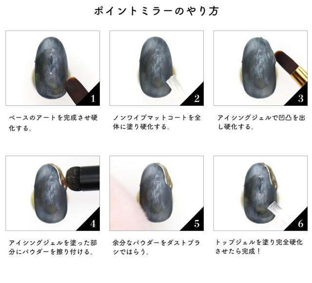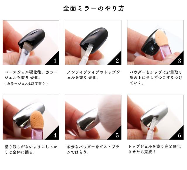 ■ノンワイプトップジェルを硬化した後にパウダーを擦り付ければ…『ミラー』に!