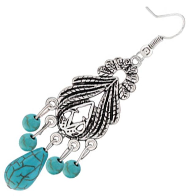 優雅に揺れるトルコ石のピアスはナチュラルストーンのパワーやヒーリングを堪能できる。