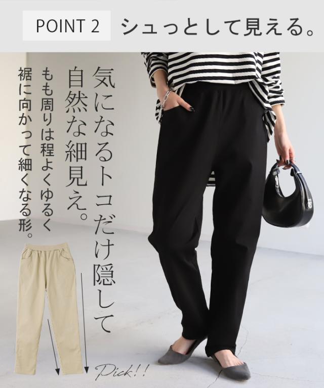 送料無料 8万枚売れたパンツの進化系【ピタゆる!テーパード】 メール便 パンツ テーパードパンツ 一部2月下旬入荷 レディース チノパンツ ボトムス ストレート ゴム リブ シンプル シェフパンツ 秋 冬 秋新作