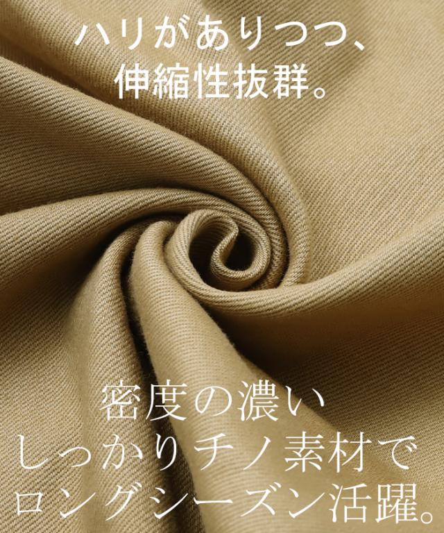 スッキリとしたシルエットが魅力のテーパードチノ。