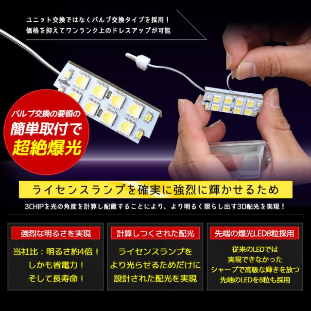 簡単取付でさらなる強烈な明るさをお求めの方は絶対にLEDライセンスランプ!