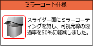 ●面にミラーコーティングを施し、可視光線の透過率を50%に軽減しました。特に屋外作業時における眩しさからくる危険を防ぎます。