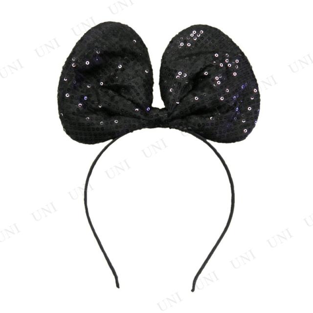 コスプレ 仮装 マウスカチューシャ リボン(ブラック) ユニエンタープライズ プチ仮装 コスプレ小物 小道具 ヘアアクセサリー 動物 アニマル フリーサイズ 女性 ハロウィン スパンコール付き