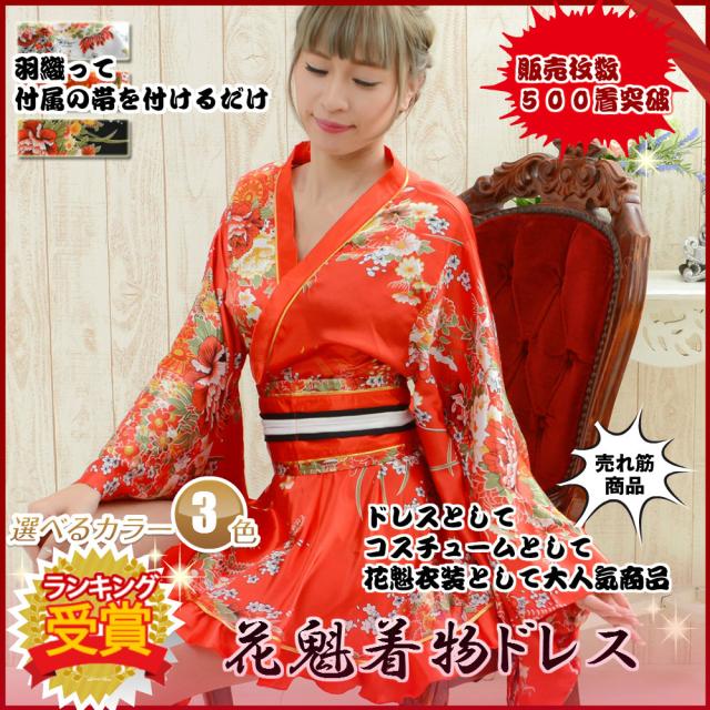 この和柄花魁着物ミニドレスは、イベントやステージでの注目を集めるのに最適な一枚です。