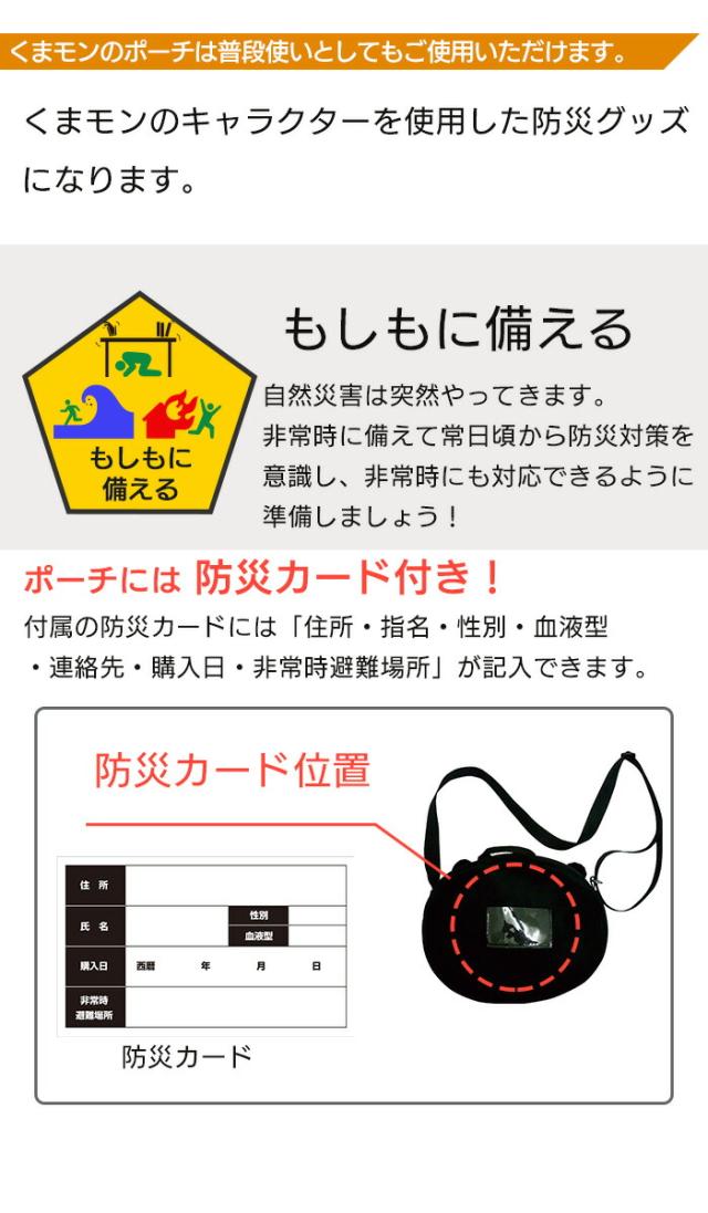 子供用 バッグ ポーチ A くまモン 非常持出し 防災 こども 防災カード付 かばん バッグ かわいい くまもん ブラック 黒 キャラクター