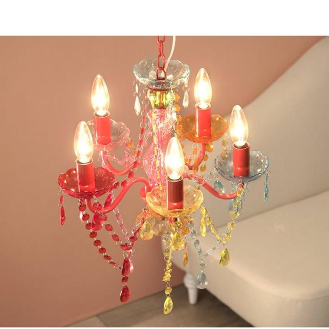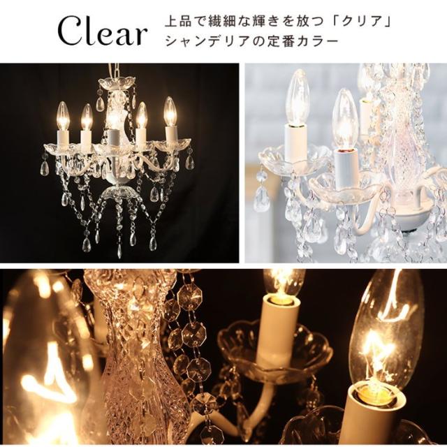 シャンデリア 5灯 小型 ミニ アクリル製 白熱灯付き LED対応 おしゃれ ペンダントライト 天井照明器具