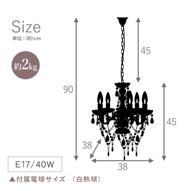 付属品:電球5個(白熱灯 E17/40W)