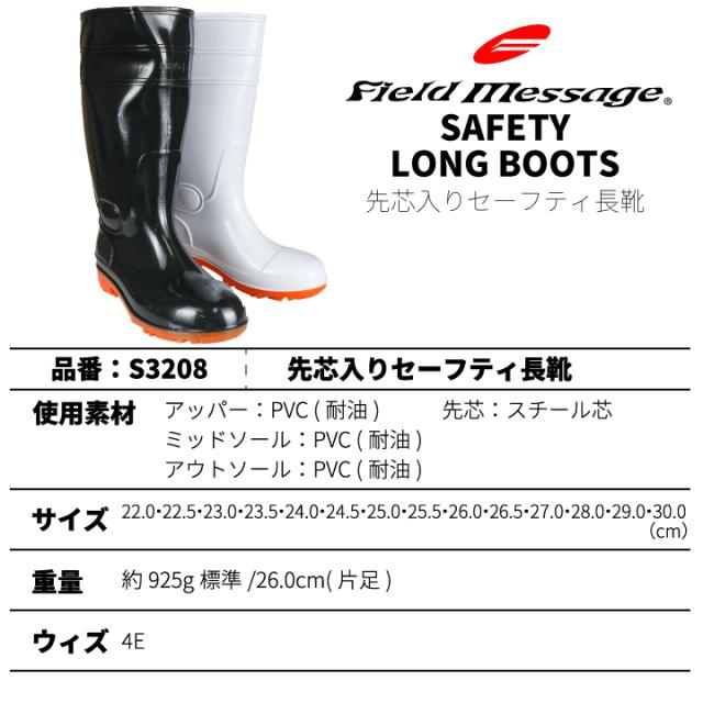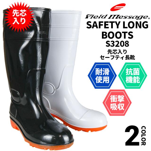 【即日発送】長靴 安全 ゴム長 自重堂 長靴 高機能先芯入り安全長靴 S3208 耐滑 抗菌長靴 4E 作業靴
