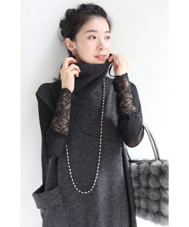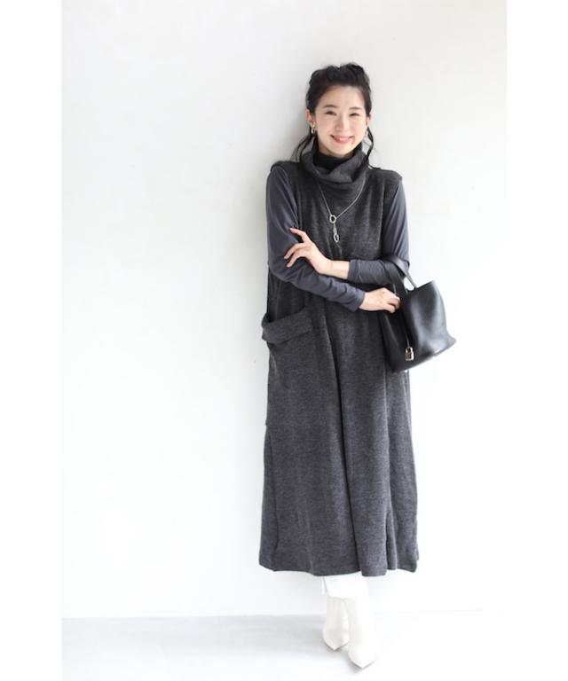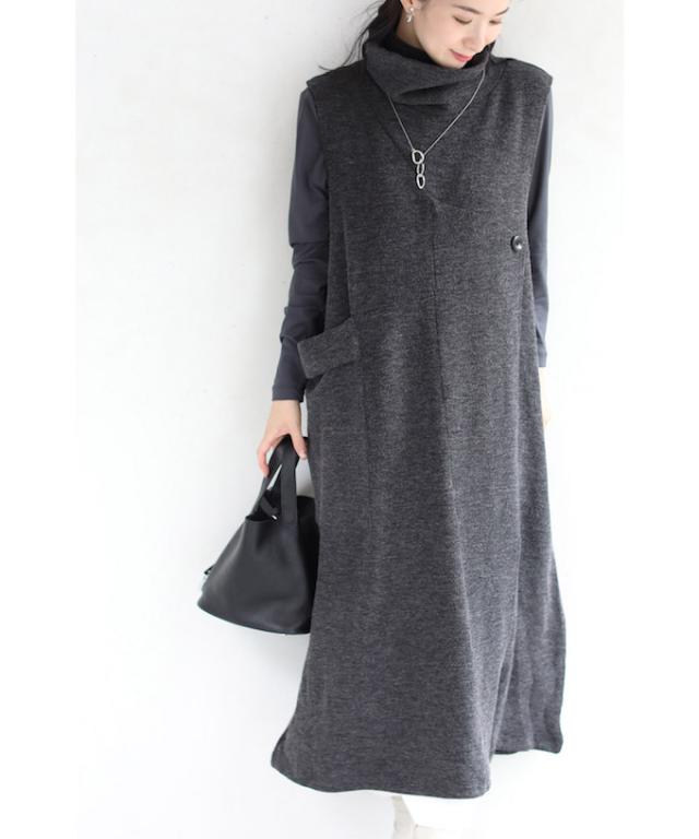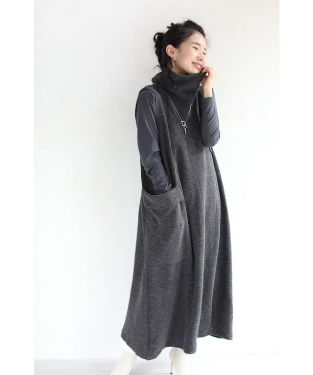 「ふんわりポケットのタートルニットロングワンピース」
