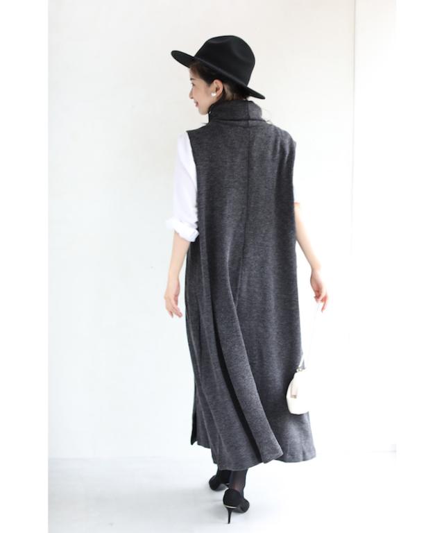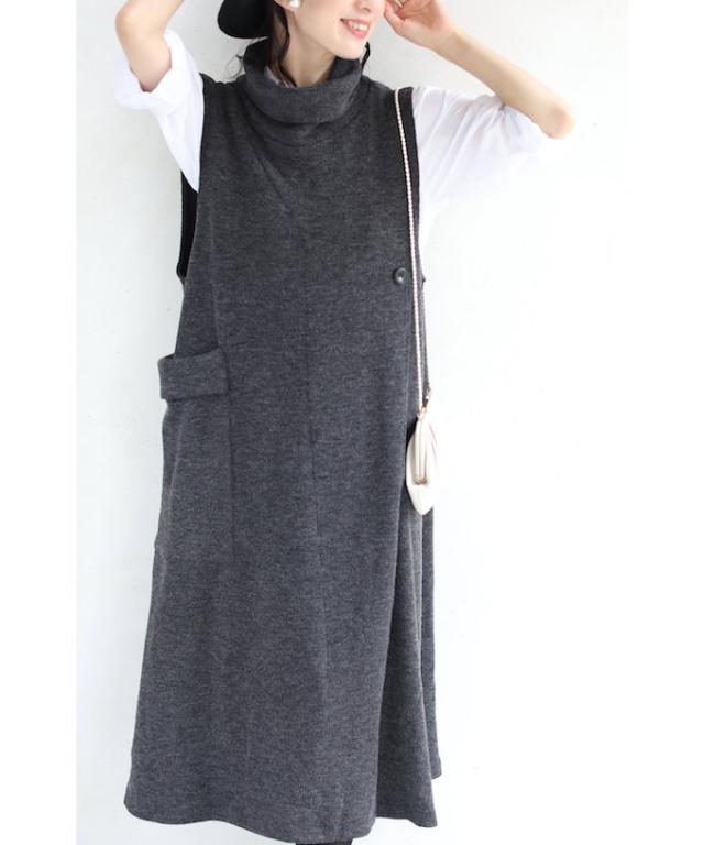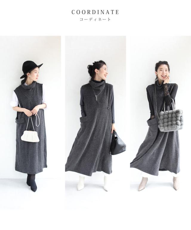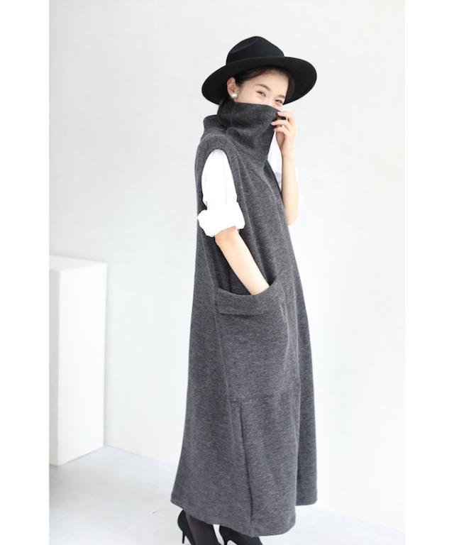 20251213sale 5箇所の体型隠しワンピース (グレー) 体型カバー ワンピース w53097 cawaii ニット秋冬 ロング ハイネック ノースリーブ ゆったり 大きいサイズ ニットベスト オフィス お呼ばれ 通勤