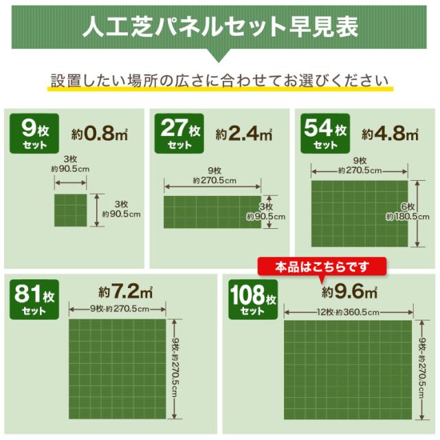 人工芝 ジョイント式 108枚セット 9.6平米用 芝丈30mm 30.5×30.5cm パネル リアル人工芝 ベランダ テラス 屋上 正方形 フロアデッキバルコニー エクステリア ガーデン