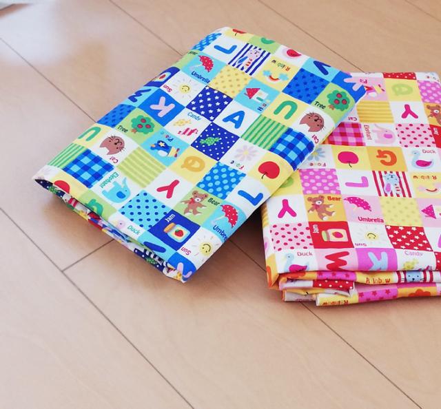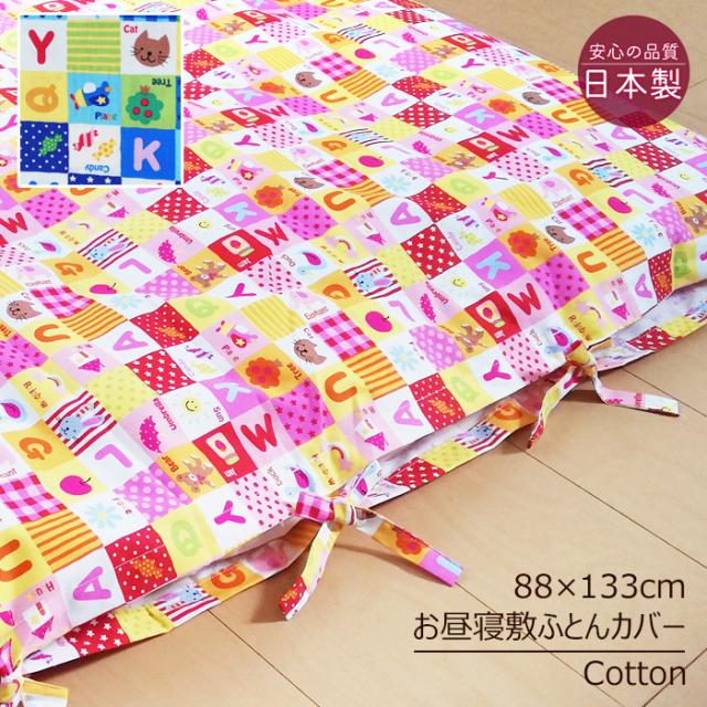 日本製 綿100% 保育園 お昼寝布団 敷き布団カバー 3カ所共布ヒモ式 88×133cm(85×130cm用)アルファベットおべんきょう柄 敷きふとんカバー ひもタイプ M便1 TMN0057T