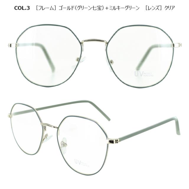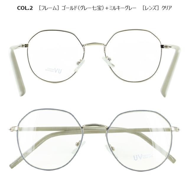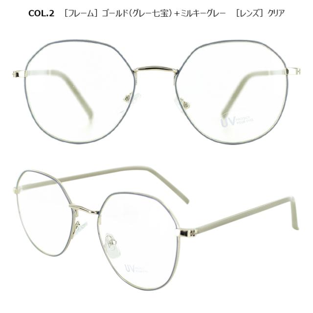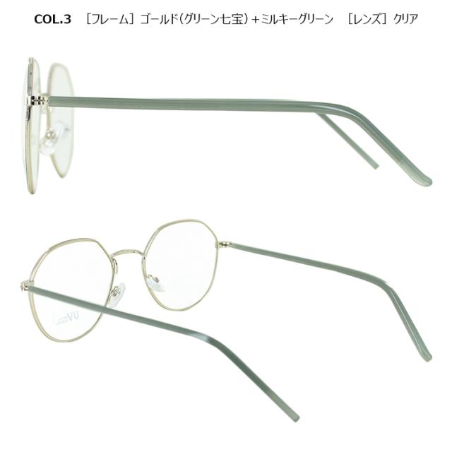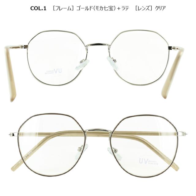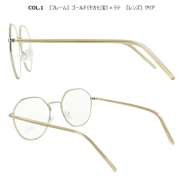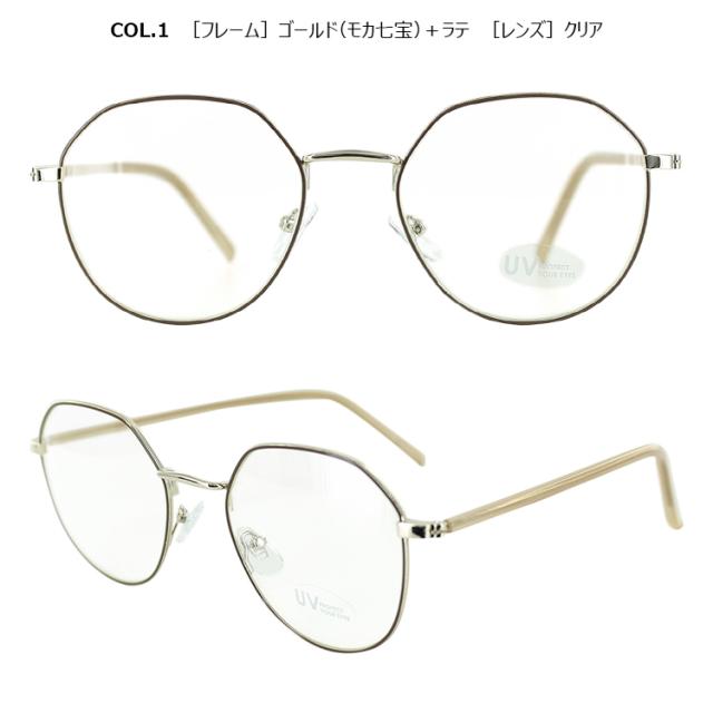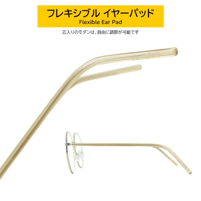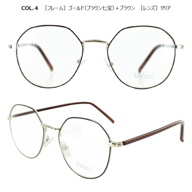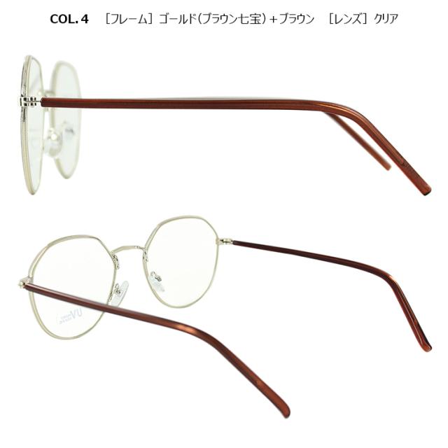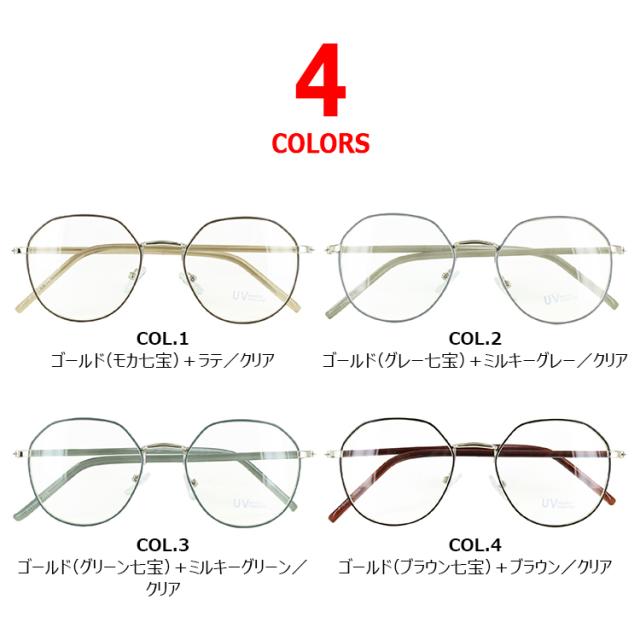 | COL.1 ゴールド(モカ七宝)+ラテ/クリア COL.2 ゴールド(グレー七宝)+ミルキーグレー/クリア COL.3 ゴールド(グリーン七宝)+ミルキーグリーン/クリア COL.4 ゴールド(ブラウン七宝)+ブラウン/ブラウン | フレーム:プラスチック(コーティング) テンプル:ニッケル合金(メッキまたは塗装) レンズ:プラスチック(塗装) |