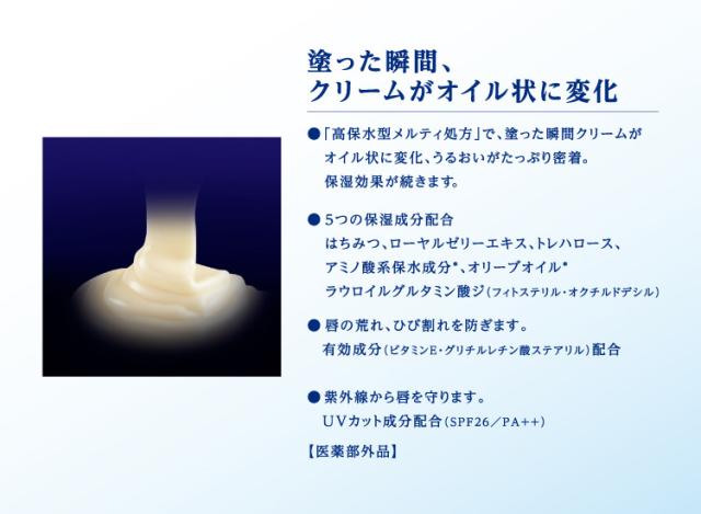 ●紫外線から唇を守ります。UVカット成分配合(SPF26 PA++)。