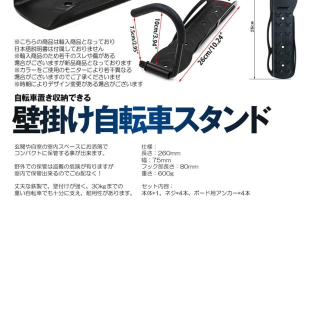 自転車 スタンド 縦 壁掛け フック 縦置きスタンド 固定式 耐荷重30kgまで 自転車置き 収納 室内 室外 KATATEZI