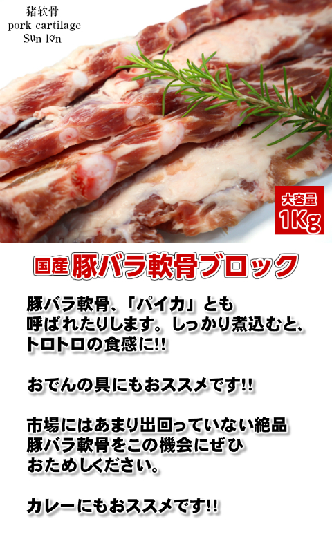 国産豚バラ軟骨1000g 豚軟骨 軟骨 ナンコツ 豚肉 豚バラ 豚バラ肉 porkcartilage gristle