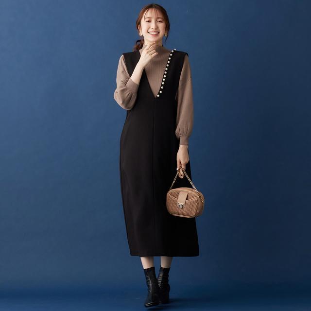 細リブ仕様でカジュアルになりすぎず、しっかりきれい見せ。