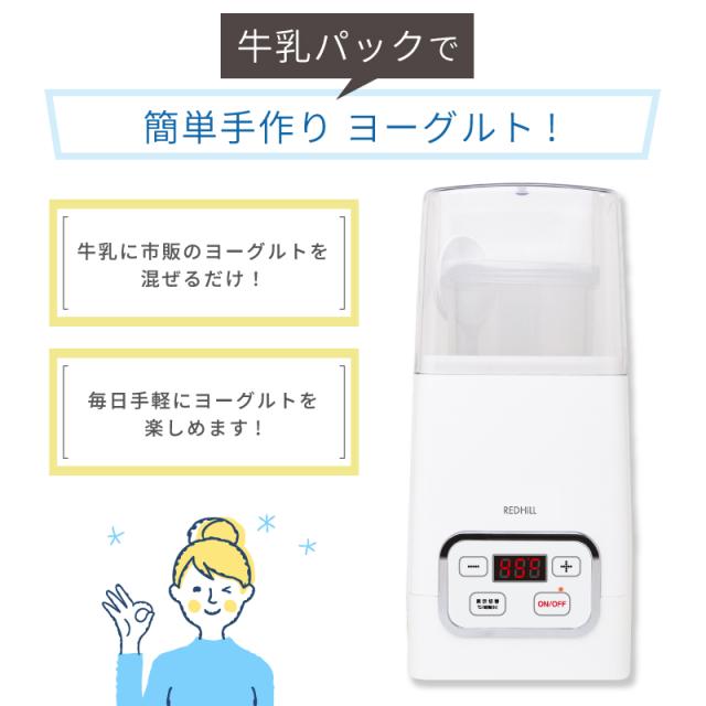 REDHill 正規品 安心タイマー設定 自在な温度設定 各種ヨーグルト 誰でも簡単に使える 高温発行にも対応 簡単操作 好みの温度設定が可能