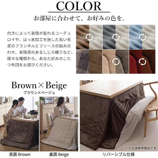 本体:ブラウン・ナチュラル 布団:ブラウンxベージュ・チャコールxベージュ・サックスxベージュ・しじら織り・ベージュxグレー・レンガxブラウン