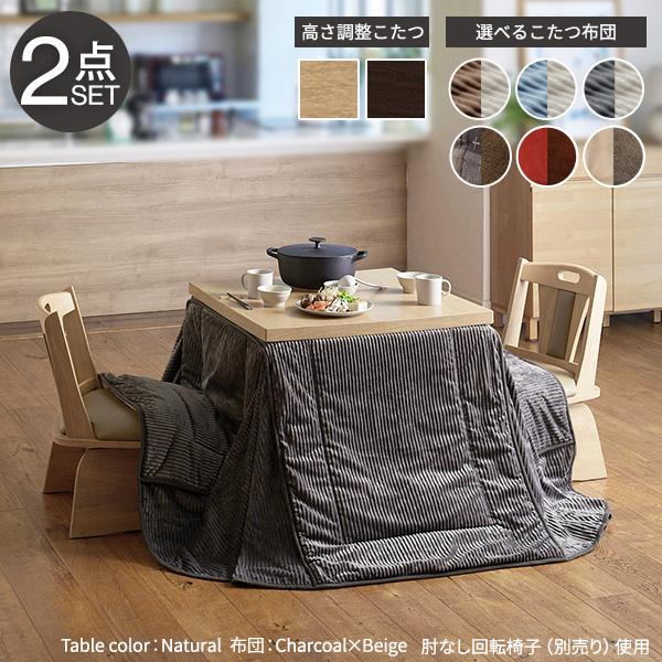 【6段階高さ調節/撥水加工/リバーシブル】ダイニングこたつ スクット 80x80cm +専用省スペース布団2点セット 12色対応 高さ45〜70cm ハイタイプ 石英管 継ぎ脚 正方形 木製 こたつテーブル こたつ布団 こたつ掛け布団 セット