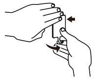 | 取り外し方 | ![]() 上記の要領で取り外してください。無理に力を加えると破損の原因となります。上部を押え、全体を下から上に向けて外します。 ※フック部を引っぱって外さないでください。 |
