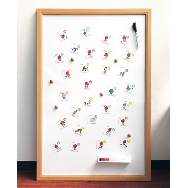 マグネットシートでできているので、お家にあるホワイトボードや冷蔵庫、お風呂の壁など、マグネットがつく場所につけて使えます。