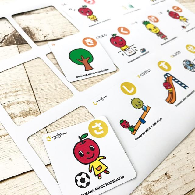 ひらがなの五十音とそのひらがなを使った簡単な単語と絵が描いてあります。一枚ずつ切り離せるので、いろいろな使い方ができます。使い方を考えてみるのも楽しい!余白のカードもあるので、自由に使ってください。