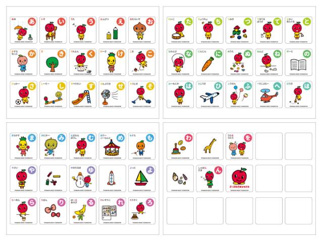 ひらがな50音(あ〜ん×各1枚)、イラスト5枚、白無地9枚 ![]() |