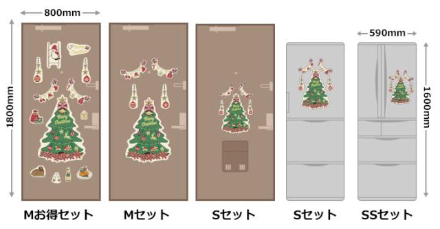 | ■ツリーは玄関ドアにおすすめのMセット、手軽にどこでも貼れるS、SSセットの3サイズ展開 | ||