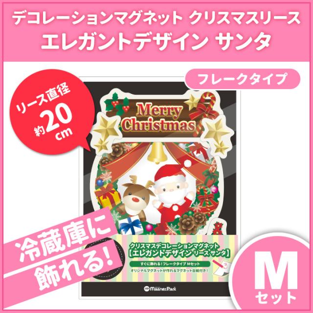 クリスマスデコマグネット ゆうパケット対応210円〜リース エレガント サンタ フレークタイプMセット 直径約20cm