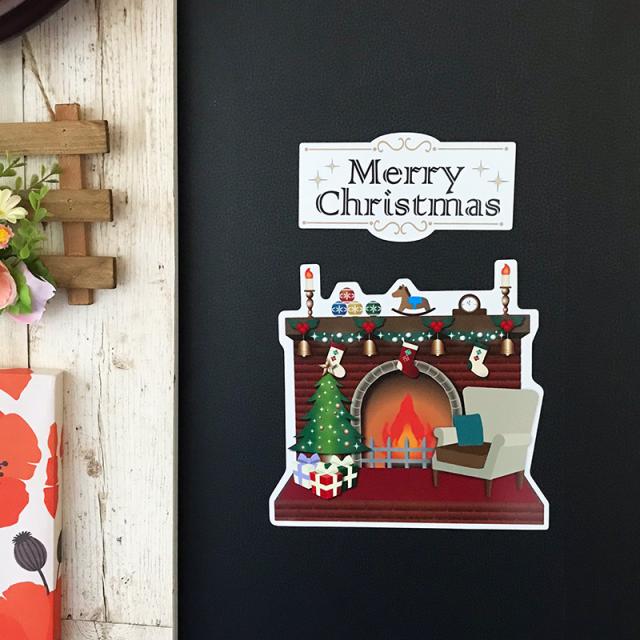 クリスマスデコマグネット「暖炉」はシートを貼るだけで、クリスマスの雰囲気を楽しめるシンプルなアイテムです。クリスマスリースや絵を飾るようなイメージで玄関や冷蔵庫を飾って楽しんでください!