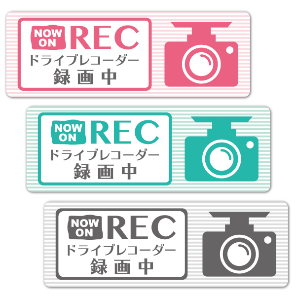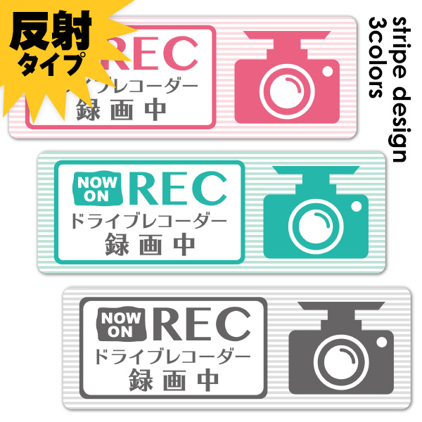 反射車マグネットステッカー ゆうパケット対応210円〜ドライブレコーダー録画中 ストライプデザイン 選べる全3色 NOW ON REC スリム型