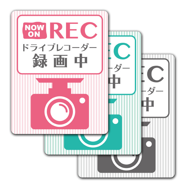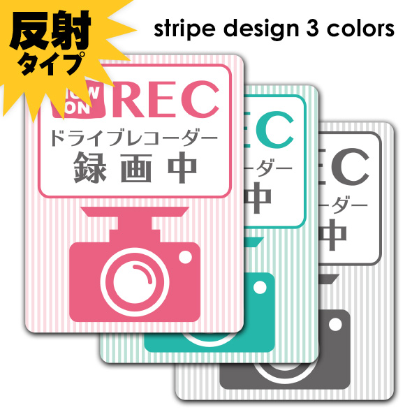 反射車マグネットステッカー ゆうパケット対応210円〜ドライブレコーダー録画中 ストライプデザイン 選べる全3色 NOW ON REC