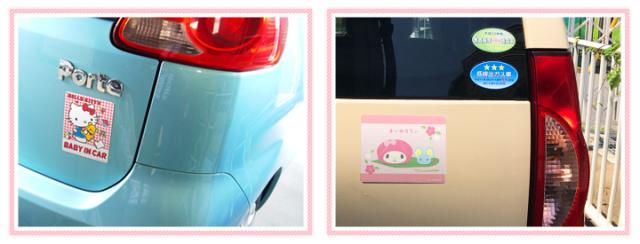 「BABY IN CAR」「CHILD IN CAR」「SAFE DRIVING」の3つのテキストと、