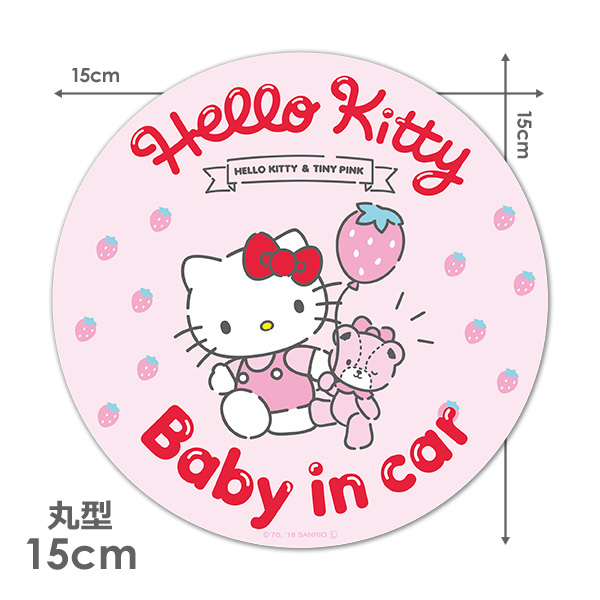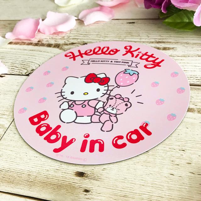 車マグネットステッカー ゆうパケット対応210円〜ハローキティ 丸型15cm BABY IN CAR ベビーインカー ベイビーインカー