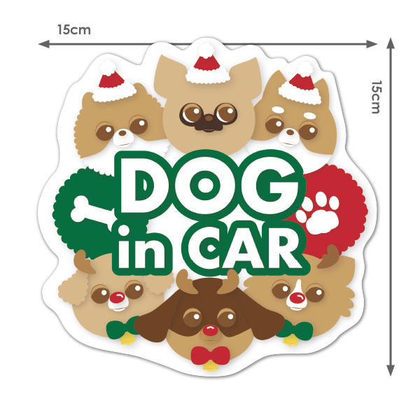 クリスマスバージョンに変身したかわいいワンちゃんが大集合!見ているだけで幸せになるキュートなDOG IN CAR。犬好きのあなたにおすすめしたいマグネットパーク限定オリジナルデザインの車マグネットステッカーです。 |