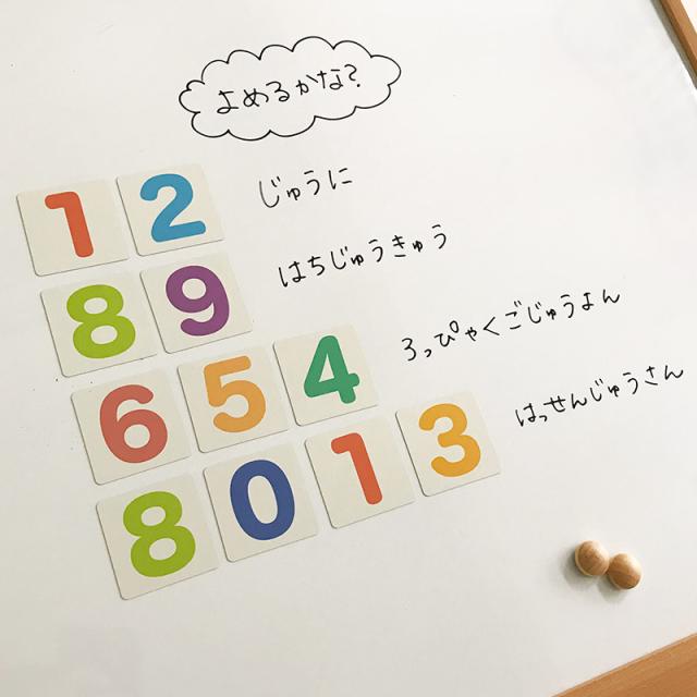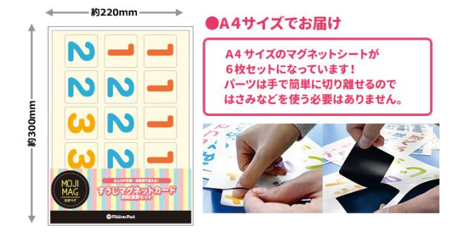 マグネットシートでできた、かわいい「すうじカード」!一枚ずつ切り離せるから、数字の読み方を勉強したり、九九を覚えたり、計算式を作ったりと遊びながらお勉強できます。