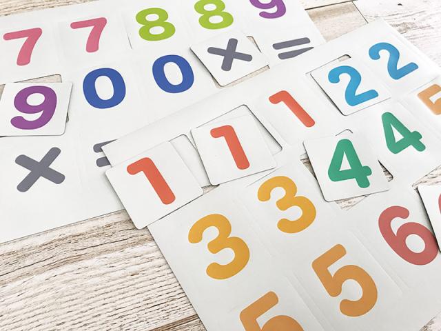 マグネットシートでできた、かわいい「すうじカード」!一枚ずつ切り離せるから、数字の読み方を勉強したり、九九を覚えたり、簡単なかけ算を作ったりと遊びながらお勉強できます。