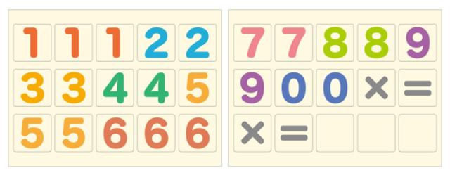 1・5・6×各3枚、2・3・4・7・8・9・0×各2枚、記号(×・=)×各2枚、無地×3枚 ![]() |