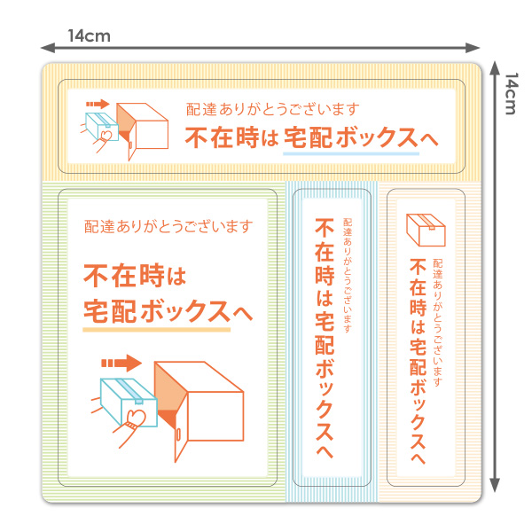 サインマグネットステッカー ゆうパケット対応210円〜サイズ・カラー違い4パーツセット 不在時は宅配ボックスへ 玄関ドアお知らせマグネット