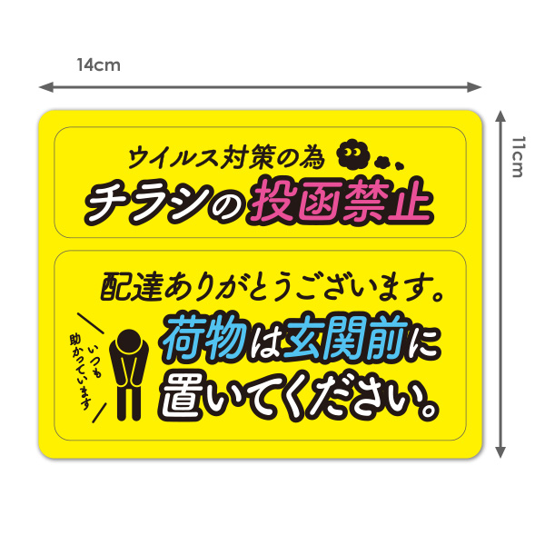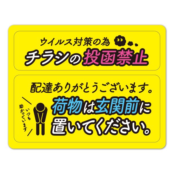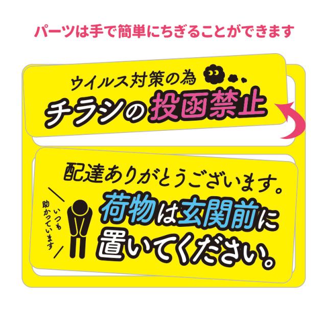 サインマグネットステッカー ゆうパケット対応210円〜2メッセージセット 置き配 チラシの投函禁止・荷物は玄関に置いてください 玄関ドアお知らせマグネット