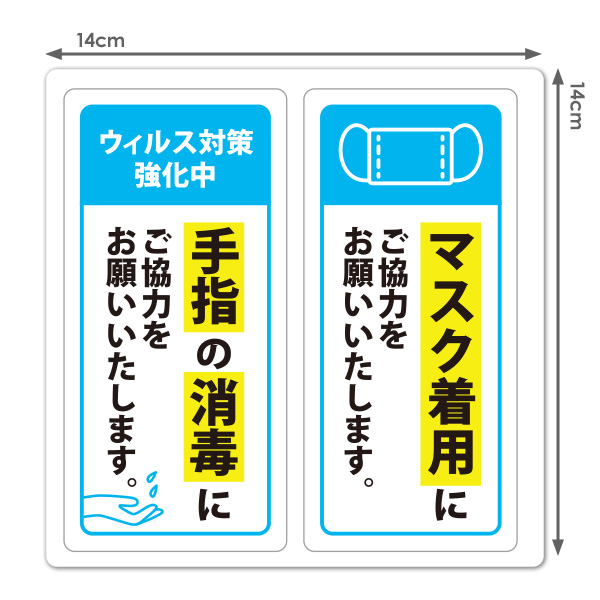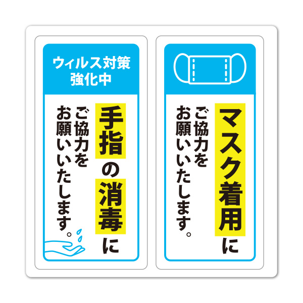サインマグネットステッカー ゆうパケット対応210円〜2メッセージセット ウイルス対策強化中 手指の消毒・マスク着用ご協力のお願い 玄関ドアお知らせマグネット