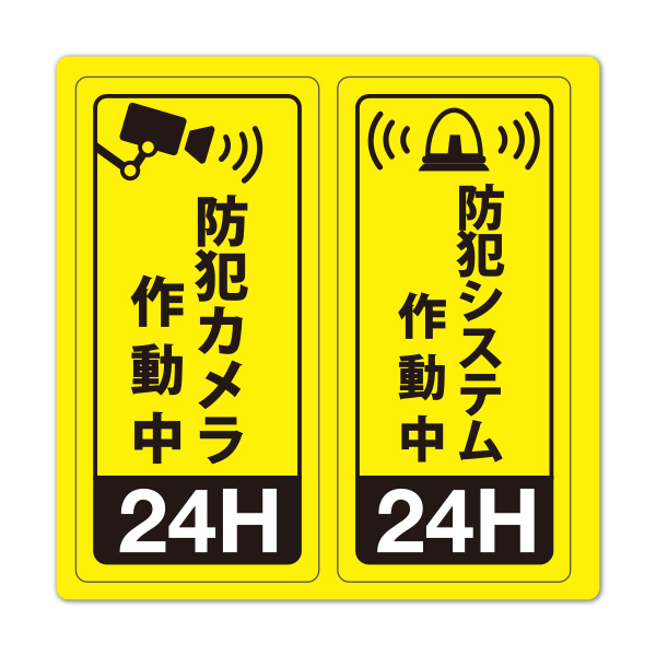 サインマグネットステッカー ゆうパケット対応210円〜2メッセージセット 防犯案内 防犯カメラ作動中・防犯システム作動中 玄関ドアお知らせマグネット