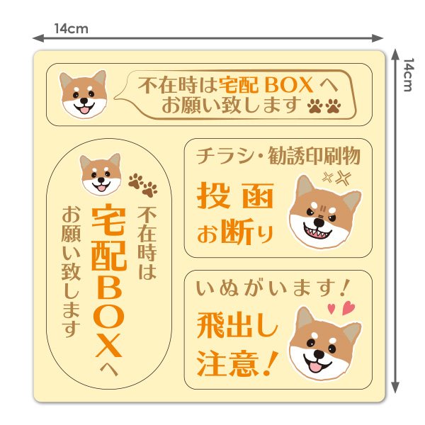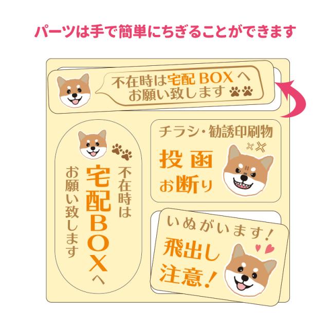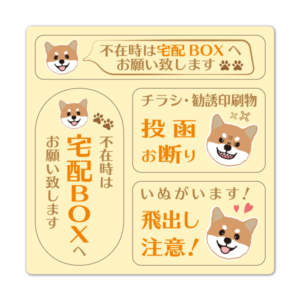 サインマグネットステッカー ゆうパケット対応210円〜3メッセージセット 柴犬 茶柴 不在時は宅配BOXへお願い致します チラシ・勧誘印刷物投函お断り いぬがいます!飛出し注意! 玄関ドアお知らせマグネット