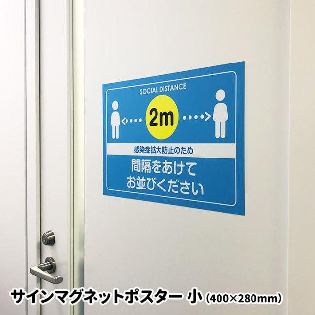 サインマグネットポスター小 マグネットシート製 宅配便限定〜ソーシャルディスタンス 間隔をあけてお並びください