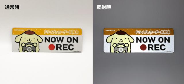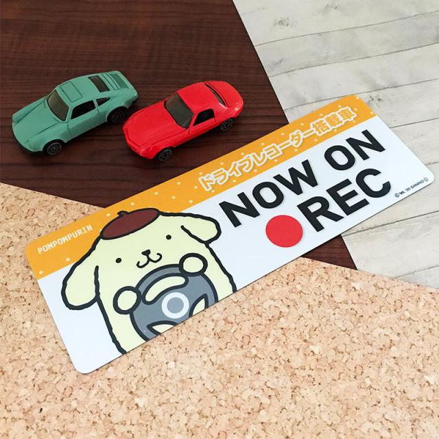車マグネットステッカー ゆうパケット対応210円〜反射マグネットステッカー ポムポムプリン ドライブレコーダー搭載車 NOW ON REC スリム型