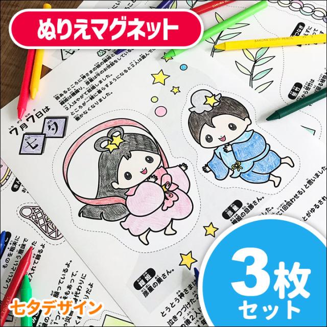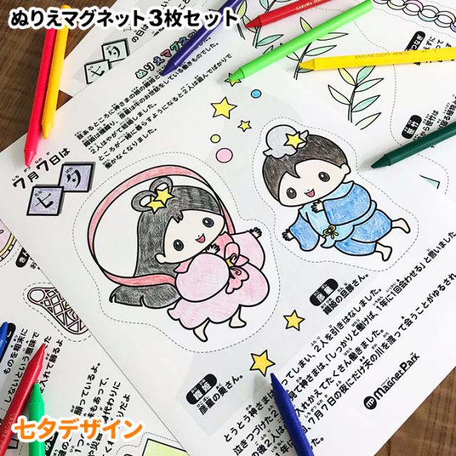 七夕ぬりえマグネット 3枚セット ゆうパケット対応210円〜たなばた 笹飾り 織姫彦星 塗り絵