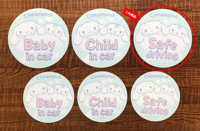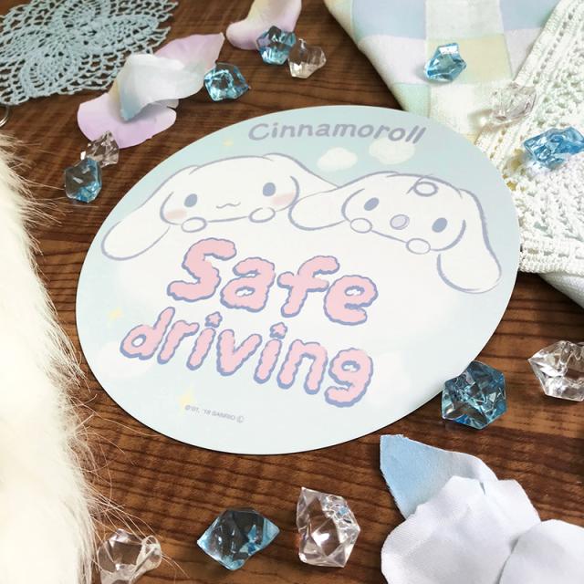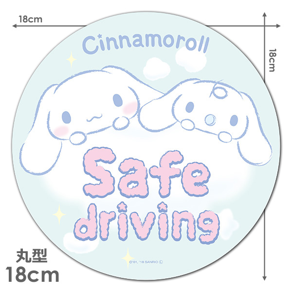 車マグネットステッカー ゆうパケット対応210円〜シナモロール 丸型18cm SAFE DRIVING セーフドライビング
