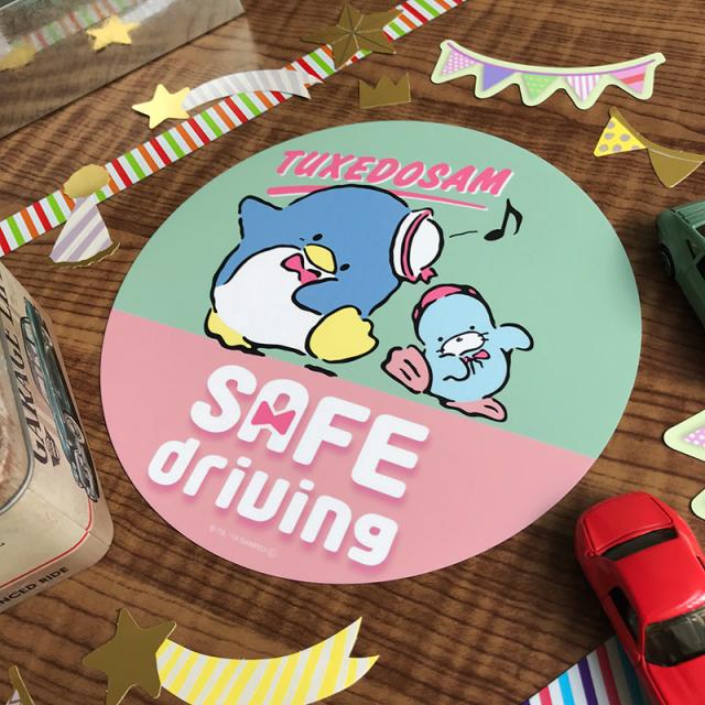 車マグネットステッカー ゆうパケット対応210円〜タキシードサム 丸型18cm SAFE DRIVING セーフドライビング
